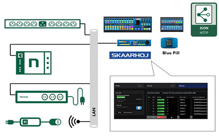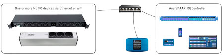 Un nombre illimité d’appareils NETIO PDU peuvent être connectés au système SKAARHOJ