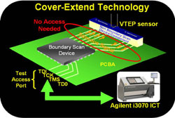 Cette technologie permet de réduire un pourcentage important des accès à la carte. Il évite de mettre des points de test aux broches du composant testé lors du test structurel Vtep (mesure de capacité).