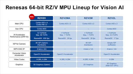 Disponibilité : Le RZ/V2H est disponible dès aujourd’hui, ainsi que la carte d’évaluation et le SDK AI.
