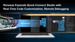 Renesas introduit maintenant la personnalisation du code en temps réel et le débogage à distance pour les utilisateurs de Quick Connect Studio. Le code généré automatiquement peut être personnalisé en temps réel dans l’application du navigateur. Grâce aux fermes de cartes à distance, le code peut être testé sur le matériel cible de manière dynamique afin de vérifier le fonctionnement avant d’acheter ou de construire la carte physique et de mettre en place le système de test. Cette capacité accélère considérablement le processus de création de preuves de concept et de prototypage de solutions système en travaillant simultanément sur les composants logiciels et matériels de la conception du système.