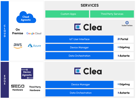 La suite logicielle open source Clea donne au développeur un contrôle total sur le parcours des données, de la manière dont elles sont collectées à la manière dont elles sont traitées et à l’endroit où elles sont stockées. Cette pile logicielle modulaire évolue du POC aux déploiements de production complets impliquant un très grand nombre d’appareils et de messages échangés. Construit sur Kubernetes, Clea est cloud-agnostique et assure aux développeurs tous les outils nécessaires pour orchestrer les données dans le cloud et les nettoyer avant d’y ajouter de l’intelligence. Clea exonère ainsi le développeur des complexités des plateformes IoT sous-jacentes et offre des fonctionnalités de gestion des appareils, notamment des mises à jour OTA sécurisées des micrologiciels, des systèmes d’exploitation et des applications conteneurisées s’exécutant sur les appareils IoT.