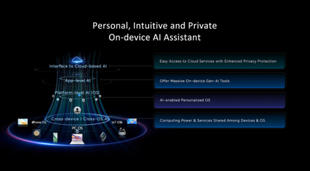 La première, l’IA inter-appareils et inter-OS (Cross-Device AI et Cross-OS AI), constitue le fondement d’un écosystème ouvert qui permet le partage de la puissance de calcul et des services entre les appareils connectés et les systèmes d’exploitation.