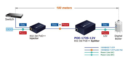 Le POE-173S-12V, lorsqu’il fonctionne avec des commutateurs ou injecteurs PoE++ PLANET 802.3bt type 4, offre davantage d’applications réseau aux appareils clients, telles que :