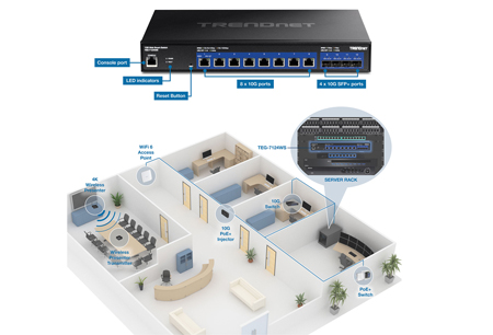 Le switch intelligent Web 10G à 12 ports de TRENDnet, modèle TEG-7124WS, offre des contrôles avancés de gestion du trafic pour répondre aux demandes évolutives des réseaux des PME.