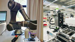 Le dispositif permet de décharger automatiquement les produits de leur convoyeur en amont, de détecter les pièces, d’ouvrir le testeur, de récupérer la pièce testée, de la repositionner directement dans son emballage prévu pour expédition !