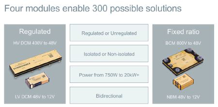 De plus, l’approche modulaire de Vicor permet aux ingénieurs de tester environ 300 combinaisons de distribution de l’alimentation en utilisant seulement 3 ou 4 modules d’éléments de base évolutifs de différents types (Figure 4). Cette approche de développement permet d’économiser plusieurs centaines d’heures en temps et en ressources, permettant aux OEM de partir gagnant dans la course à l’électrification.