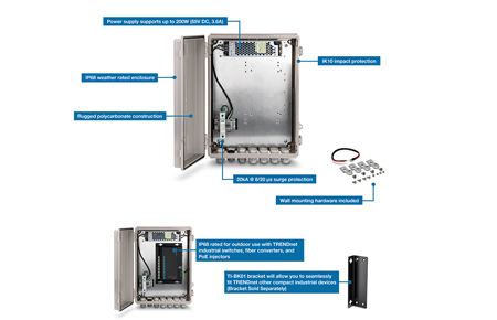 Le boîtier extérieur TI-CA3K, résistant aux intempéries est bien adapté à une utilisation avec la gamme de switch industriels, de convertisseurs fibre et d’injecteurs PoE de TRENDnet.