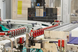 Les capteurs de Leuze assurent plusieurs fonctions à différents endroits : « Les capteurs montés sur la bande détectent la présence et la position correcte des cellules. Si elles sont présentes et correctement positionnées, le processus se poursuit », explique Jürgen Schweiß. L’avantage des capteurs de la série PRK 25C : ils détectent la surface très brillante des cellules avec une fiabilité absolue. De plus, l’émetteur et le récepteur se trouvent dans le même boîtier. Cela signifie que les applications peuvent être mises en œuvre de manière pratique et rentable, même dans des situations d’installation restreintes. La variante du capteur optimisée pour les objets réfléchissants permet d’atteindre des portées allant jusqu’à 16 mètres (52,5 ft). Les opérateurs de systèmes peuvent également configurer facilement la sensibilité, puisqu’ils sont réglés rapidement et facilement grâce à leur point lumineux. Outre les capteurs PRK 25C avec réflecteur, les détecteurs de la série HT25C avec suppression de l’arrière-plan sont également utilisés pour détecter les cellules individuelles.