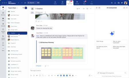 Rattraper rapidement les discussions en demandant à AI Companion de résumer les conversations non lues dans certains chats et canaux.