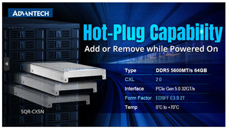 La gamme Advantech SQRAM CXL 2.0 d’extension de mémoire est actuellement soumise à des programmes de serveurs test.