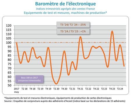 Le Collège Equipements & Services et Test & Mesures d’ACSIEL vient de finaliser le baromètre du 3e trimestre 2024.