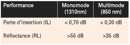 La férule 3M™ EBO offre des valeurs d’atténuation exceptionnelles pour les applications monomodes et multimodes pour un connecteur à lentille.