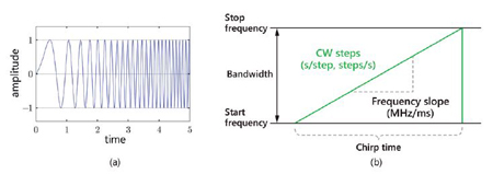 Un signal dont la fréquence augmente linéairement avec le temps est connu sous le nom de chirp (figure 2a) et est essentiel à la performance du signal FMWC.
