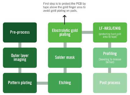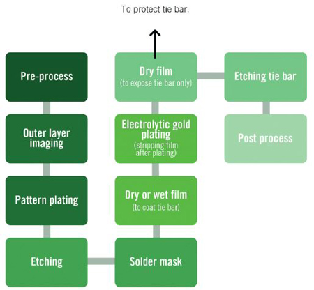 Étant donné qu’une finition hard gold est appliquée par un processus électrolytique, des nourrices sont nécessaires pour relier les pastilles dorées à l’anode. Ces pistes doivent être enlevées après la métallisation, ce qui peut être fait de deux manières :