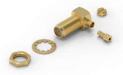 Connecteur passe-cloison à angle droit WR-SMA : ce connecteur coudé, destiné aux applications jusqu’à 6 GHz, se distingue par son encombrement réduit et sa capacité à limiter la traction sur le câble. Le nouveau modèle de la série WR-SMA, conçu pour un montage par sertissage, est également proposé en version étanche avec indice de protection IP67.