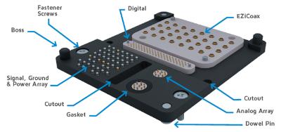 Les interposeurs EZiCoax sont intrinsèquement conformes et offrent des capacités de connexion à l’aveugle fiables. Ils constituent une solution idéale pour déconnecter rapidement des applications lors d’une réparation ou d’un remplacement de système. Les interposeurs EZiCoax permettent de remédier efficacement aux problèmes de désalignement de la cible, car les connecteurs de sonde à ressort sont conformes de par leur conception et ne nécessitent qu’un plot plat comme cible. Le contact est maintenu tant que la pointe de la sonde touche un point quelconque de la cible, ce qui permet de compenser tout désalignement.