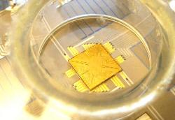 technique, qui permet d’obtenir une faible diaphonie, s’intègre parfaitement aux pièges à ions sur puce. La