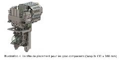Un placement flexible La conception d’une solution de placement à grande vitesse des composants lourds et volumineux implique des changements conséquents sur les machines de report standards. Parmi ces changements, les adaptations de la tête de placement n’en sont pas des moindres. Les buses à pinces, qui associent aspiration et pincement, sont extrêmement efficaces pour maintenir fermement des composants inhabituels. Pour l’instant, les assembleurs devaient faire une demande de buse personnalisée auprès de leurs fournisseurs pour se procurer des buses de ce type.