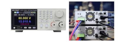 Légende : La nouvelle série d’alimentations de laboratoire VSPP de Voltcraft se distingue par des tensions et des puissances de sortie élevées et permet un fonctionnement en série et en parallèle. Affichant une tension de sortie de 600 V/CC et une puissance de 3 000 W, l’alimentation VSPP-3060 est la plus puissante des six modèles.