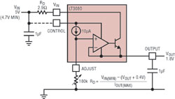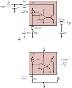 Figure 1 Régulateur de tension LT3080 et régulateur de courant LT3092 de nouvelle architecture.