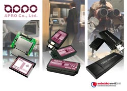 En outre, APRO présentera sa gamme complète de mémoires flash NAND de classe industrielle comprenant des cartes SD (Secure Digital), des cartes CompactFlash, des cartes PCMCIA, des clés USB durcies et étanches, des SSD 2,5 pouces SATA simple niveau et multi-niveaux, des SSD 2,5 pouces IDE, des micro-SSD SATA, des cartes CFast, des clés USB grande capacité, des modules SATA, des modules USB, et des SSD 1.8 pouce ZIF.