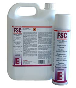 Formulé à partir d’une résine silicone de qualité supérieure, FSC offre une excellente adhérence sur un grand nombre de substrats. Il est fluorescent aux UV pour faciliter l’inspection. Avec une large plage de température comprise entre -50°C et +125°C, FSC est sec au toucher à 20°C en 10 à 15 minutes. Il est thermosoudable sans crainte d’émanation de gaz fortement toxiques. FSC est compatible avec toutes les méthodes d’application : pinceau, trempé, machine de dépose sélective, pistolet pour une utilisation adaptée à tous les besoins. Le vernis polymérisé peut être retiré avec le solvant Electrolube ULS (Ultrasolve).