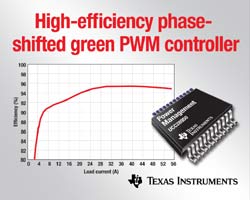 Texas Instruments Incorporated (TI) lance un contrôleur PWM déphasé en pont complet avec sorties synchrones de commande de MOSFET et gestion des faibles charges. Le composant UCC28950 peut atteindre un rendement de plus de 90% à faibles charges et pleines charges, ce qui lui permet de répondre à la norme d’efficacité 90+ Climate Savers®. Ce composant met en oeuvre un mécanisme adaptatif de commande de la commutation à tension zéro (ZVS) sur une plage 10:1. La plage étendue de fonctionnement en ZVS assure une réduction de la consommation sur une plus large plage de puissances de sortie. Pour en savoir plus sur ce produit, http://www.ti.com/ucc28950-preu.