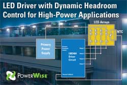 National Semiconductor Corp. (NYSE : NSM) a annoncé le premier driver de LED du marché à commande d’espace libre dynamique et sorties multiples pour applications haute puissance, capable de piloter précisément et efficacement jusqu’à quatre chaines de LED. Le LM3464, membre de la famille de circuits à rendement optimisé PowerWise® de National, optimise le rendement tout en réduisant la complexité et le coût du système, pour les applications faisant appel à un grand nombre de LED, en éclairage industriel, urbain ou automobile.
