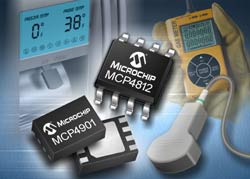 La famille des MCP48XX dispose d’une tension de référence interne tandis que celle des MCP49XX accepte une tension de référence externe. Ces CNA sont indiqués pour les domaines d’application suivants, entre autres : électronique grand public (appareils ménagers, afficheurs LCD, périphériques d’ordinateurs, etc.), applications industrielles (systèmes de contrôle, contrôle de moteurs, compteurs, etc.), applications médicales (ultrasons, ECG, calibrage de capteurs, etc.).