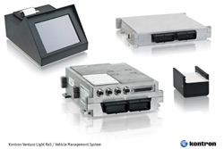 Kontron présente en première, à InnoTrans à Berlin, le système de gestion de véhicule Venturo, ensemble de briques de base prêtes à l’emploi pour toutes applications informatiques et de communications embarquées à bord de bus et de trains légers dans les transports publics. Ce kit intégré offre aux fournisseurs de solutions, aux équipementiers et aux intégrateurs système une plate-forme matérielle prête pour les applications, réduisant le temps de mise sur le marché. Les différents éléments peuvent être combinés de manière spécifique ; ils peuvent aussi être personnalisés en fonction de besoins spécifiques.