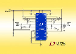 Des techniques de conception spéciales conduisent à un rendement élevé sur une large gamme de tensions d’entrée et son architecture à mode courant permet une réponse rapide aux transitoires et une excellente stabilité de boucle. Le LT3692 présente également un diviseur de fréquence sur un canal qui lui permet de fonctionner à des fréquences 1/2, 1/4 ou 1/8 de celle de l’autre canal, afin de permettre des rapports de conversion en abaisseur élevés tout en réduisant les dimensions du produit réalisé. Une protection améliorée contre les courts-circuits et un gestionnaire de température de la puce offrent des niveaux de protection supplémentaires. Les autres caractéristiques incluent l’arrêt thermique et les drapeaux « puissance correcte » indépendants.