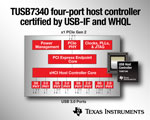 la première entreprise de semiconducteurs à obtenir une certification de la part de l’USB Implementers Forum (USB-IF) pour son contrôleur hôte extensible (xHCI) 4 ports USB SuperSpeed (USB 3.0). En plus de ce contrôleur hôte à quatre ports, le TUSB7340, TI a également obtenu une certification pour son contrôleur hôte à deux ports, le TUSB7320. Ces contrôleurs hôtes à deux et quatre ports sont compatibles avec des applications telles que les ordinateurs portables, les ordinateurs de bureau, les stations de travail, les serveurs, les cartes d’extension et les cartes de type ExpressCard, ainsi qu’avec les contrôleurs hôtes intégrés de type PCIe pour la TVHD, les boîtiers décodeurs et les applications pour consoles de jeux. Téléchargez les fiches techniques, demandez des échantillons gratuits et commandez des modules d’évaluation (EVMs) ici : http://www.ti.com/tusb7340-preu