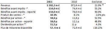 (2) 2011 : inclut 5 p acompte sur dividendes et 6,5 p dividende final proposé