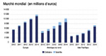 Ce marché est en pleine croissance et affiche des taux de progression de l’ordre de 30%. Il représentait 14 milliards d’Euros en 2010 et doit atteindre 165 milliards d’Euros en 2014. Dans ce domaine, l’Europe a une situation prépondérante comme le montre le graphique cidessous.