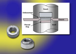 En appliquant cette méthode, les écrous PEM Type S dans les dimensions de filetage de ¼-20, 5/16-18, M6, et M8 et d’une longueur de jupe de code -2 s’installent avec succès dans des tôles en aluminium. Les feuilles doivent avoir une épaisseur comprise entre 1,5 mm et 2 mm (0.059” / 0.79”) pour une dureté de tôle de HB 79.7 (HRB 40) maxi. Quand l’équipement in-die n’est pas utilisé, il est recommandé d’employer un système de maintien, un gabarit ou autre appareil de positionnement pour s’assurer que la fixation est constamment et correctement positionnée sur la tôle