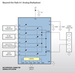 Dans le passé, de multiples dispositifs étaient nécessaires pour multiplexer / commuter des signaux d’interface plus grands que 5 V, pour les interfaces CAN, RS-485 et RS-232, ou pour commuter des signaux basse tension plus petits que 5 V, pour les signaux USB et audio. Le MAX14778 à entrée ±25 V peut multiplexer jusqu’à 8 canaux, ce qui en fait un choix idéal pour les applications exigeant le partage de connecteurs (multiplexage de signaux RS-232, USB, RS-485, CAN ou audio).