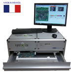 InspectoScan-S-A3 :Technologie scanner haute définition spécifiquement modifié et conçu pour la lecture des marquages des composants CMS. Permet de capturer une image complète de la carte en une seule numérisation. Les logiciels associés offrent ensuite plusieurs possibilités de contrôles de chaque composant, par comparaison d’images.