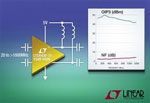 Un amplificateur de gain 15dB, qui atteint une large gamme dynamique, chargé en différentiel par 100ohms, de 20MHz à 1GHz et au-delà. Il est disponible en deux grades de performances : à 240MHz, l’OIP3 du grade A est typiquement de 50dBm et est entièrement testé et garanti pour atteindre au minimum 47dBm. La figure de bruit est de 3dB, ce qui correspond à un niveau de bruit de l’amplificateur de 1nV/Hz, référencé à la tension d’entrée. La consommation en continu est de 800mW. Cette combinaison d’un faible niveau de bruit et d’une faible distorsion offre la large gamme dynamique nécessaire aux applications, de performances élevées, des télécommunications de fréquence intermédiaire et de télévision par câble (CATV).