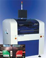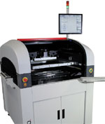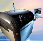 Il s’agit d’une machine automatique en ligne ayant toutes les caractéristiques nécessaires (alignement auto, répétabilité, nettoyage auto, inspection post print, SPC, etc.) pour être insérée dans une ligne de production dont la cadence moyenne peut aller jusqu’à 20 000CPH.