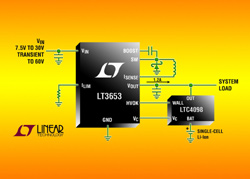 Un régulateur monolithique, à découpage, abaisseur, à mode courant, 1,2 A, 1,5 MHz, avec limitation du courant de sortie programmable. Typiquement, il est utilisé avec les contrôleurs de chargeur de batterie PowerPath pour pré-réguler la tension de sortie et optimiser le rendement du chargeur de batterie. Sa gamme de tensions d’entrée étendue, de 7,5 V à 30 V, rend le LT3653 idéal pour une grande variété de sources d’alimentation, incluant les régulateurs muraux 12V non régulés, les alimentations 24 V de l’industrie et les applications Firewire ainsi que celles de l’automobile. Un circuit de blocage en cas de surtension en entrée protège le composant des transitoires en entrée jusqu’à 60 V, comme ceux généralement rencontrés dans les applications de l’automobile.