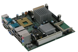 Le mITX-945E-P est un ordinateur monocarte de format Mini-ITX, doté d’un emplacement d’extension PCI avec un processeur Core 2 Duo, Core Duo ou Celeron M d’Intel ; jusqu’à 4 Go de mémoire DDR2 ajustable ; deux ports Gigabit Ethernet à l’arrière ; huit ports USB ; trois ports COM ; un port VGA ; et divers périphériques de stockage incluant une interface CompactFlash. Le mITX-945-P offre une gamme étendue d’implémentations multimédias et une dissipation de puissance limitée.