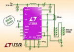 Le LT3954 utilise un MOSFET canal N interne, 5A, 40V, et peut contrôler jusqu’à huit LED blanches de 650mA à partir d’une tension d’entrée nominale de 12V, fournissant un excédant de puissance de 20W.