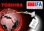 À l’occasion du salon IFA 2013 (hall 21a), Toshiba Electronics Europe présentera ses dernières cartes mémoire et solutions de stockage de données, ainsi que sa gamme complète de produits électroniques grand public composée de téléviseurs HD et 3D, de tablettes, d’ordinateurs portables et d’ultraportables. Entre autres produits présentés, citons des cartes SD ultra haut débit, des cartes SD haut débit avec fonction Wi-Fi intégrée, des cartes mémoire USB 3.0 haut débit, des disques durs électroniques hautes performances et des disques durs électroniques hybrides de nouvelle génération.