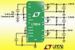 La fréquence de commutation du LT3514 est programmable par l’utilisateur, de 250kHz à 2,2MHz, et peut être synchronisée sur toute la gamme, ce qui permet au concepteur d’optimiser le rendement tout en évitant les bandes de fréquences critiques, sensibles au bruit. La combinaison du boîtier QFN de 28 broches, 4mm x 5mm, et de la fréquence de commutation élevée du composant qui permet l’emploi de condensateurs et d’inductances externes de petite taille, conduit à une empreinte très compacte, de bon rendement thermique, pour les applications à plusieurs sorties.