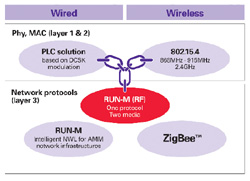 Conçu pour les applications de relevé automatique de compteurs (AMR), le logiciel RUN-M (RF) offrira des extensions de réseau sans fil conformes au standard de couche MAC IEEE 802.15.4. Grâce à l’approche sans fil, les applications AMR pourront mesurer non seulement la consommation électrique mais aussi la consommation de gaz et d’eau, avec un seul protocole de réseau.