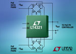 Linear Technology Corporation présente le LT4321, un contrôleur de ponts de diodes idéales, qui permet le remplacement de deux redresseurs à ponts de diodes par des redresseurs à MOSFET canal N, à faibles pertes, afin d’accroître la tension disponible et réduire la puissance dissipée dans les composants alimentés sur Ethernet (PoE PD).
