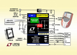 Le membre le plus récent d’une famille de circuits intégrés, gestionnaires d’alimentations, à fonctions multiples, destinés aux applications alimentées sur batterie Li-ion / polymère, incluant les disques durs multimédias HDD, les appareils photographiques numériques, les appareils de navigation personnels, les PDA, les téléphones intelligents et les produits électroniques portables compatible avec le secteur automobile. Le LTC3576 possède un gestionnaire d’alimentation bidirectionnel avec protection contre les surtensions en entrée et fonction On-The-Go (OTG) chargeur de batterie autonome, trois régulateurs abaisseurs synchrones, au rendement élevé, une diode idéale, un contrôle par interface I2C, un régulateur LDO toujours en fonction, tout ceci en un boîtier compact QFN, 4 mm x 6 mm, de faible profil.
