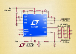 Convertisseur DC / DC, élévateur à sortie double et inverseur à une sortie, pour les applications à CCD / LCD