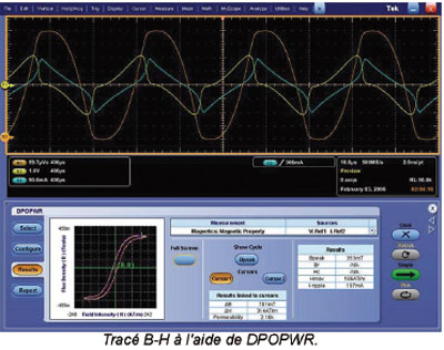 Plus précisément les éléments en question sont ceux qui présentent une inductance en fonction des changements de la tension et du courant dans le temps. Une fois acquis, un instrument de mesure approprie peut utiliser les mesures de tension et de courant - ainsi que quelques informations de base sur le composant en question pour calculer une série de paramètres importants, notamment la perte de puissance magnétique, que l’on peut comparer a la fiche technique du constructeur pour calculer la perte de cuivre. En outre, les mêmes mesures peuvent être utilisées pour évaluer la densité du flux magnétique (B) et la force du champ magnétique (H) pour générer un trace B-H ; toutes ces propriétés dépendent des caractéristiques physiques du composant magnétique. La capacité de valider et de mesurer les évolutions (le cas échéant) de ces propriétés est un facteur déterminant du choix des composants et de la conception de l’alimentation.