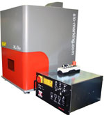 Des pièces de taille importantes peuvent y être marquées (jusqu’à 370 mm de haut) avec une table rainurée et des filetages pour faciliter la fixation de support de pièces. Pour être encore plus efficace, XL Box est équipé d’une porte sécurisée qui se ferme automatiquement au lancement du cycle de marquage (pneumatique) et s’ouvre en toute seule en fin de cycle. Les réglages de l’axe Z se font instinctivement grâce à son système numérique motorisé sur une course de 235 mm. Avec l’aide additionnelle de 2 pointeurs rouge, la focalisation sur la pièce se fait très facilement. Le laser est sécurisé pour l’opérateur en respectant la classe 1 selon la norme EN 60825-1.